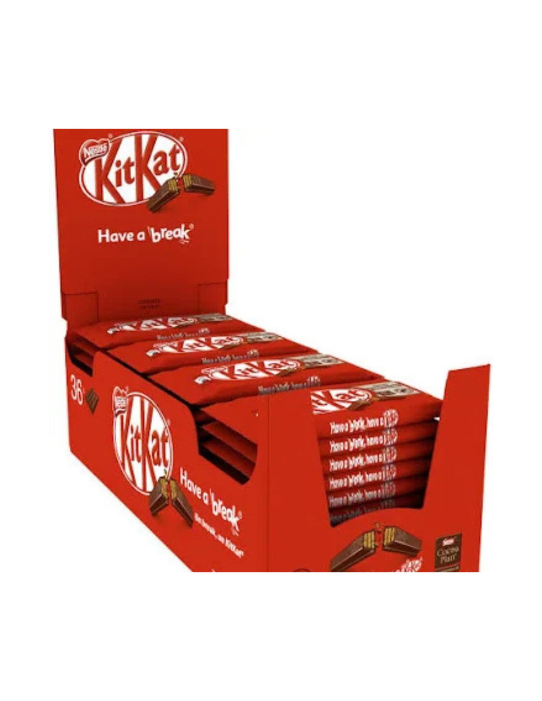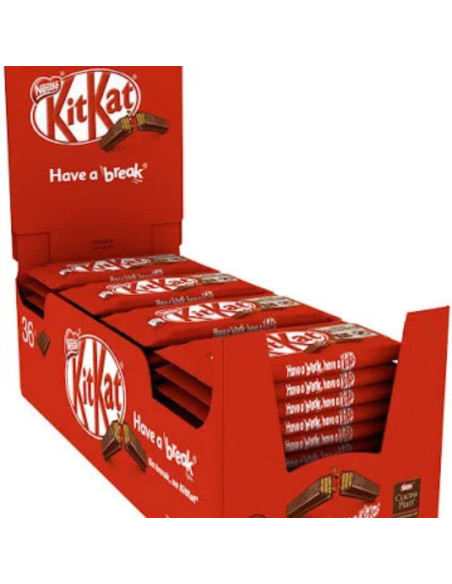 Contiene barritas individuales compuestas por capas de galletas crujientes recubiertas de chocolate con leche.