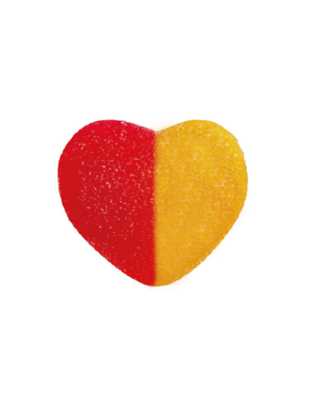 Este corazon partido en dos colores y con una fina capa de azucar con sabor a melocoton ideal para tomar en cualquier momento.